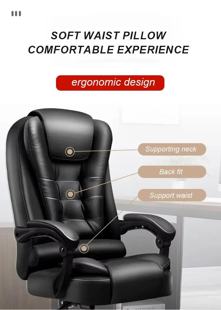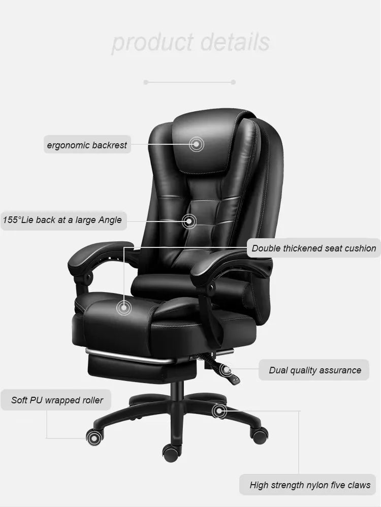 Crafted from high-quality leather, the chair boasts a sleek black finish that not only elevates the look of your office but also ensures durability for long-term use. The reclining feature allows you to adjust the position to find your perfect angle, promoting relaxation during those long working hours.