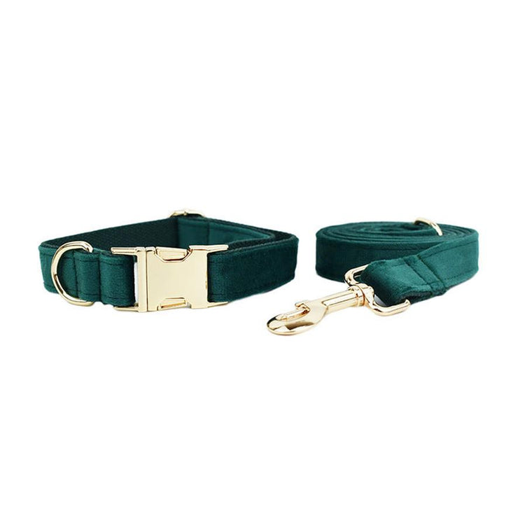 JMT-091978 Velvet Pet Collar with Matching Traction Rope and Bow Tie Set