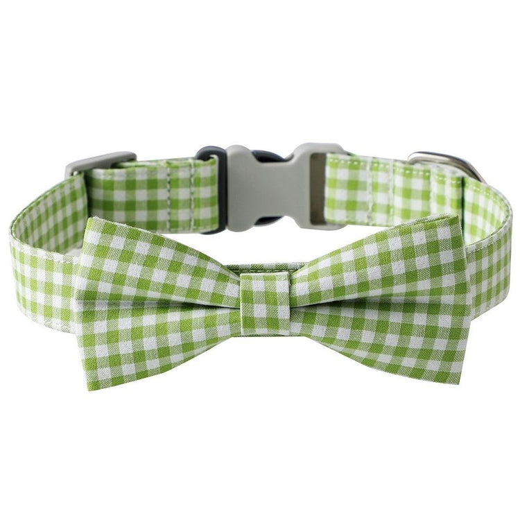 JMT-645898 Checkered Dog Collar with Bow Tie - Cotton Polyester in Multiple Colors