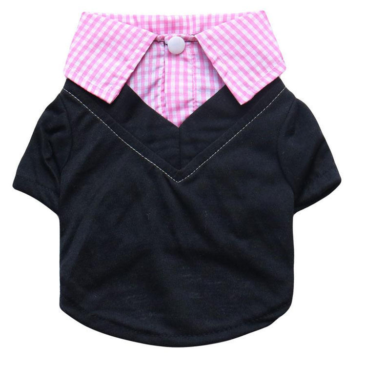 JMT-389642 Teddy Printed Plaid Pointed Collar Pet Shirt for Small Dogs - Polyester T-Shirt in Black and Pink, Yellow, or Blue