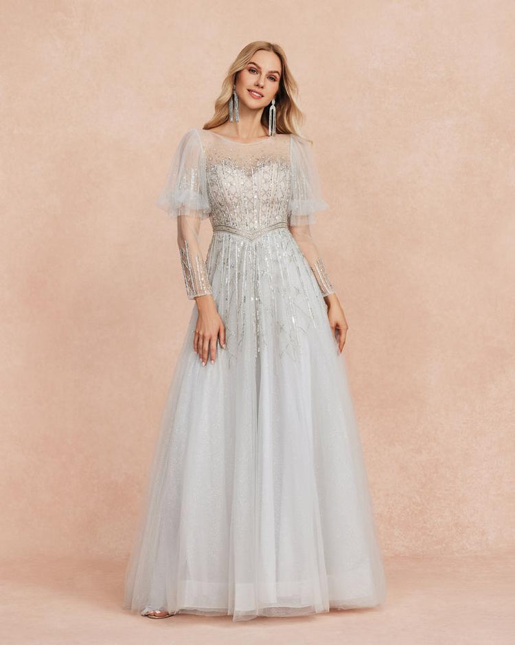 JMT-395850 Elegant Silver Evening Gown for Women - Stylish Floor-Length Dress with Sophisticated Design