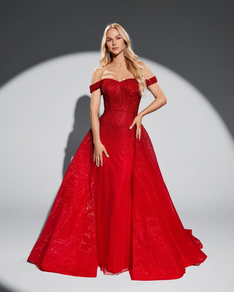 JMT-139146 Elegant Women's Evening Gown in Red, Model SH0199, Perfect for Formal Occasions