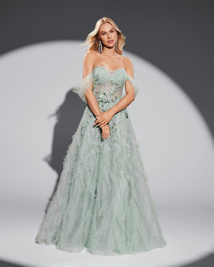 JMT-153802 Elegant Green Evening Gown for Ladies - Style SH0221