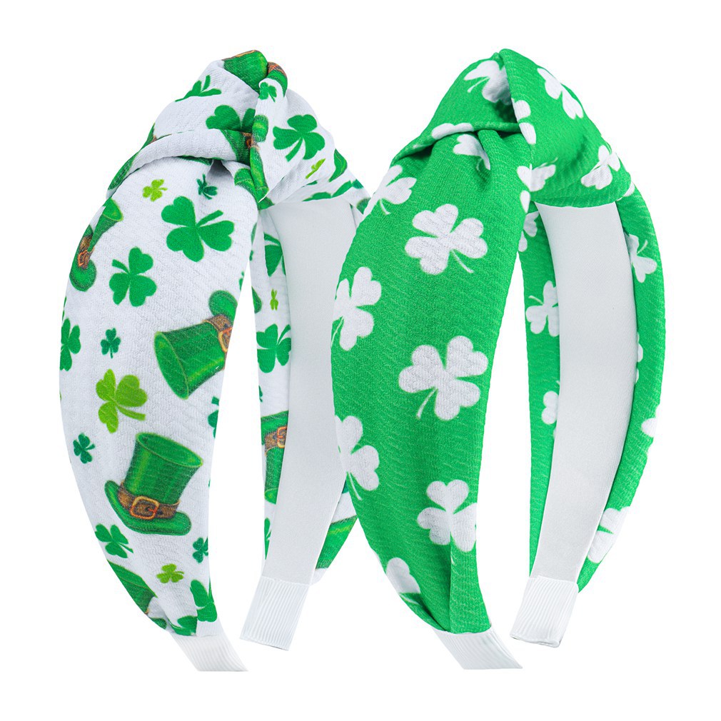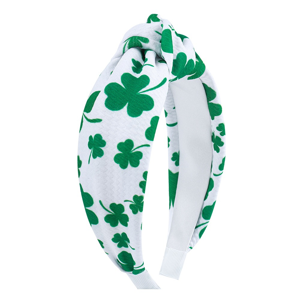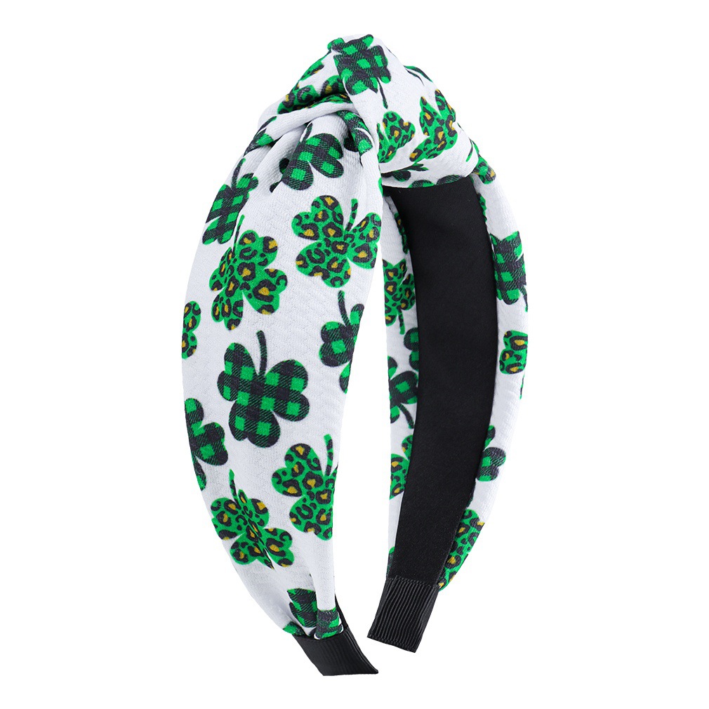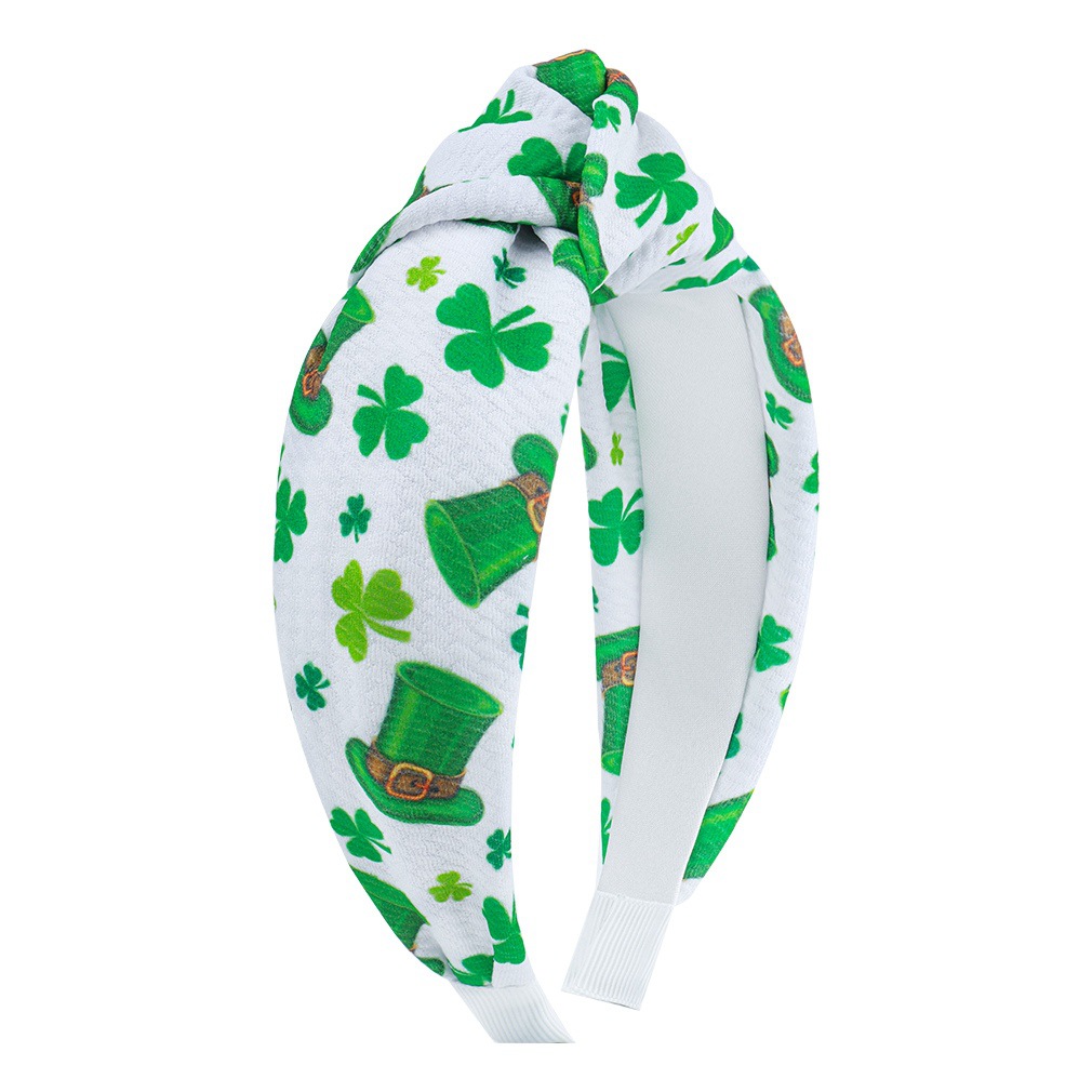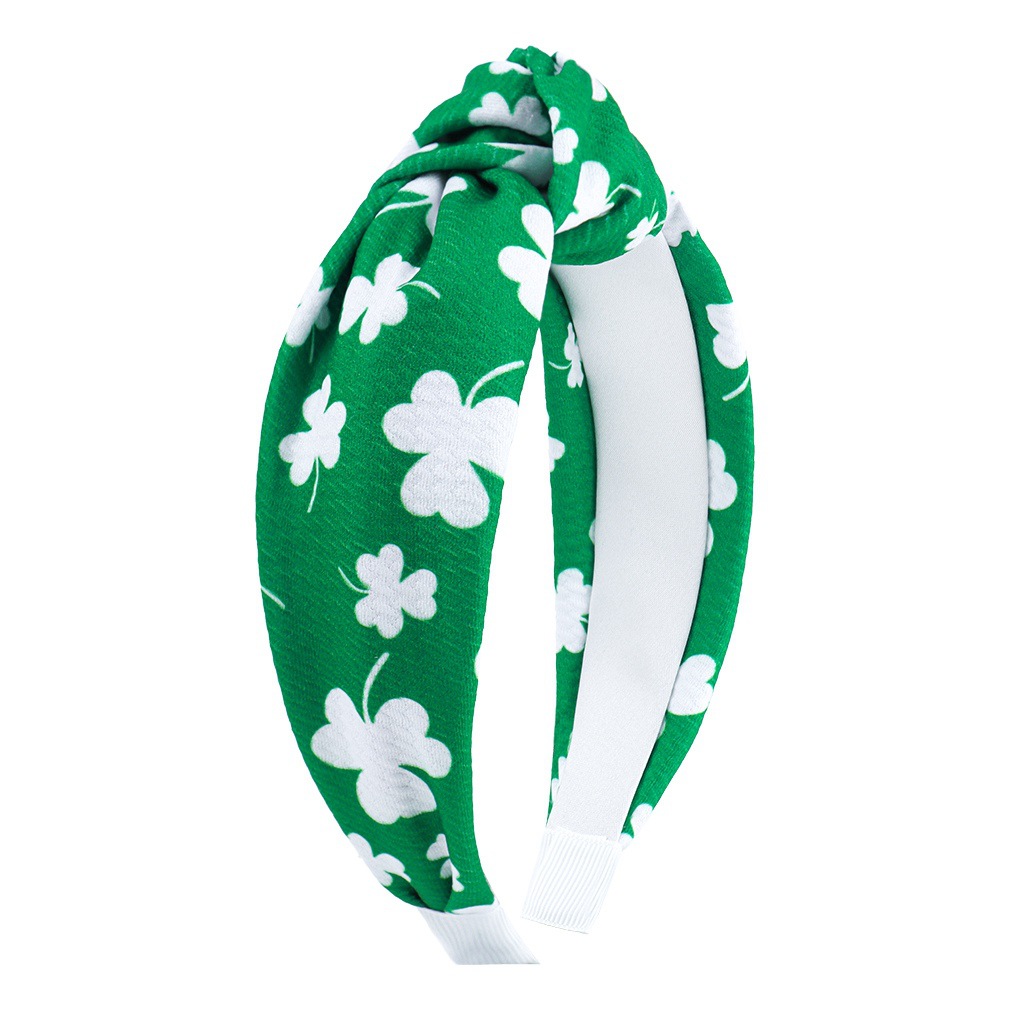 JMT-781450 St. Patrick's Day Clover Seersucker Knotted Hair Hoop for Women