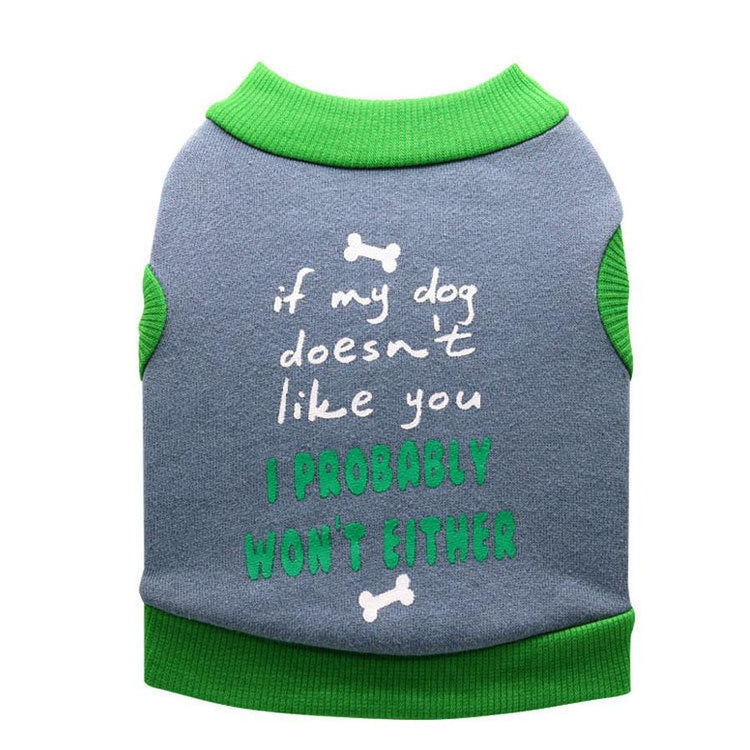 JMT-718602 Fleece Cloth Small Dog Vest with Letter and Bone Design, Available in Gray with Green Edge
