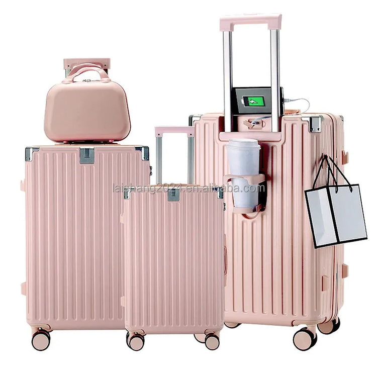 JMT-861002 Durable Rolling Suitcase for Travel with USB Charger and Cup Holder for Girls