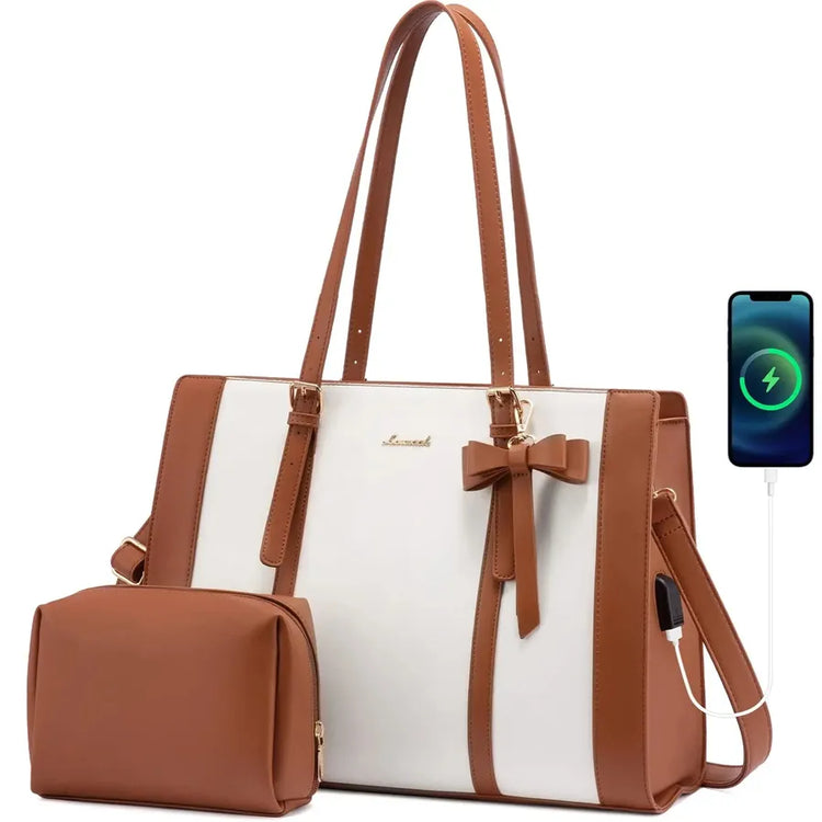 JMT-002058 2pc Ladies Handbag Set - PU Leather Office Tote and Laptop Briefcase, 15.6 Inch Women's Shoulder Bags