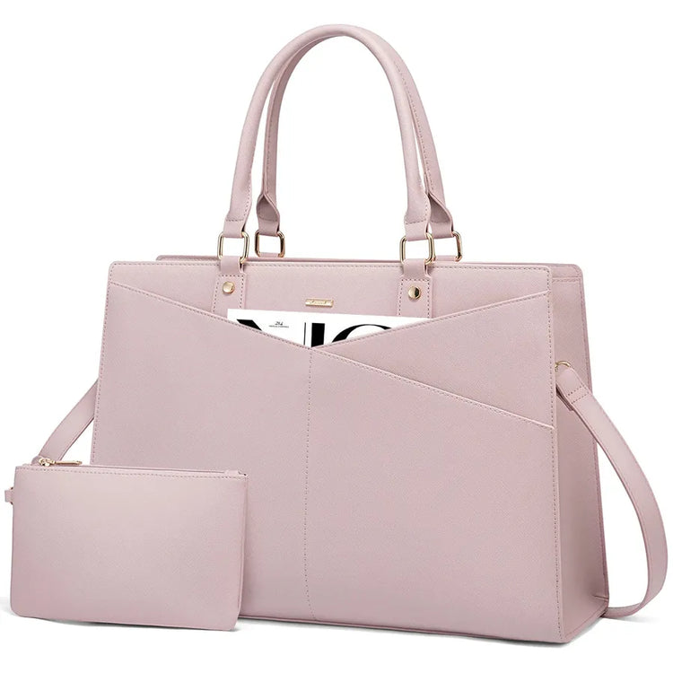 JMT-698250 Classic Designer Leather Laptop Tote Bag for 15.6 Inch Devices, Ladies Large Capacity Hand Bag