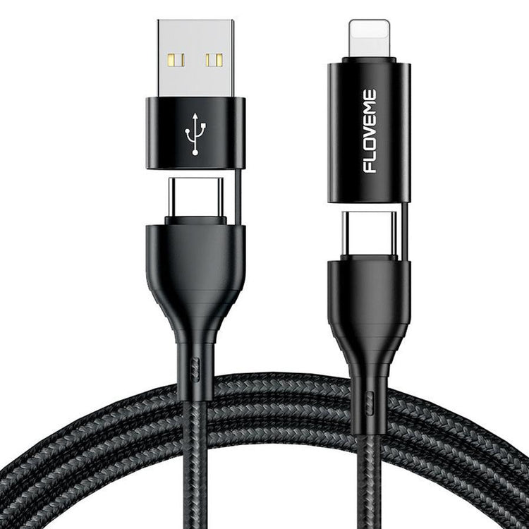 JMT-515658 4-in-1 Fast Charging Braided Data Cable with PVC and Nylon for Multiple Devices